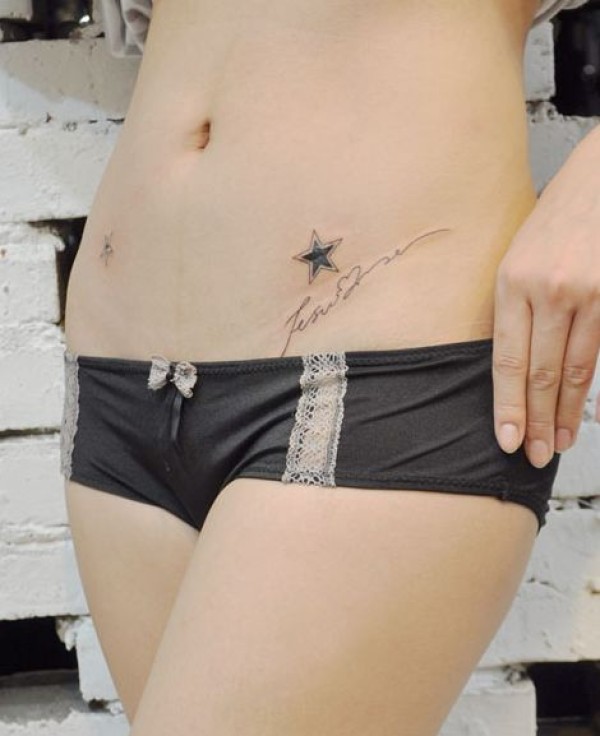 女生腹部简单唯美的五角星与字母纹身图案_字母纹身图案大全_纹身图吧