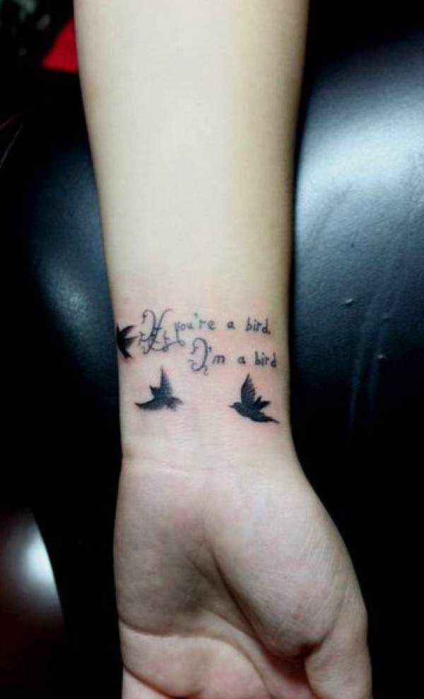 女生手腕处小鸟与字母纹身图案_字母纹身图案大全_纹身图吧