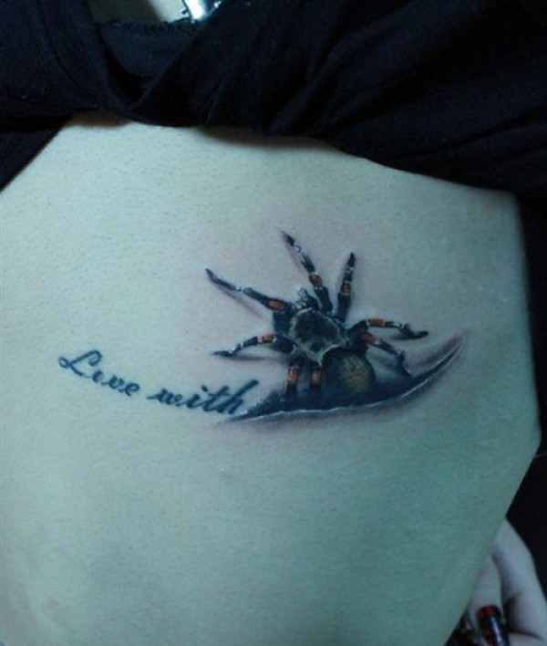 女孩子背部蜘蛛与字母纹身图案_字母纹身图案大全_纹身图吧