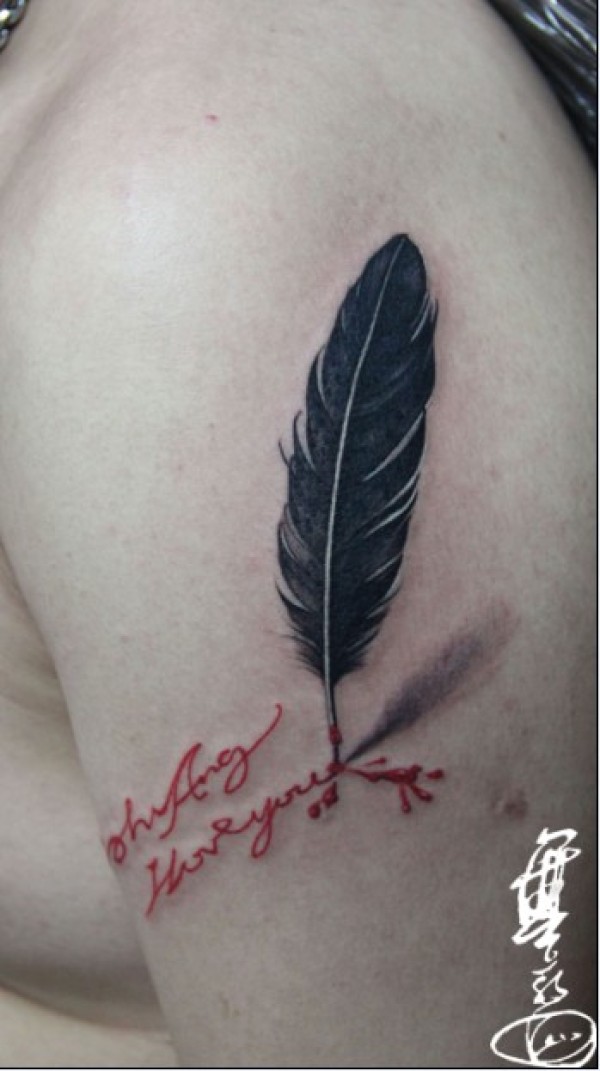 手臂一款羽毛与字母纹身图案_字母纹身图案大全_纹身图吧