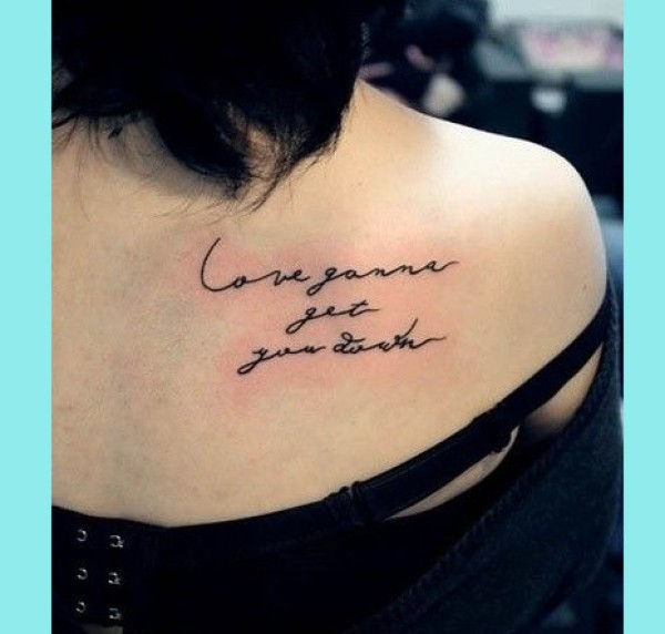 女生肩背一款时尚简洁的字母纹身图案_字母纹身图案大全_纹身图吧