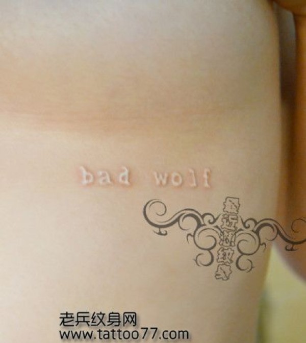 女生胸部一款白色字母纹身图案_字母纹身图案大全_纹身图吧