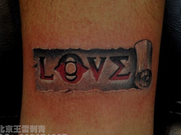 腿部一款撕皮加烙印效果字母纹身图案_字母纹身图案大全_纹身图吧