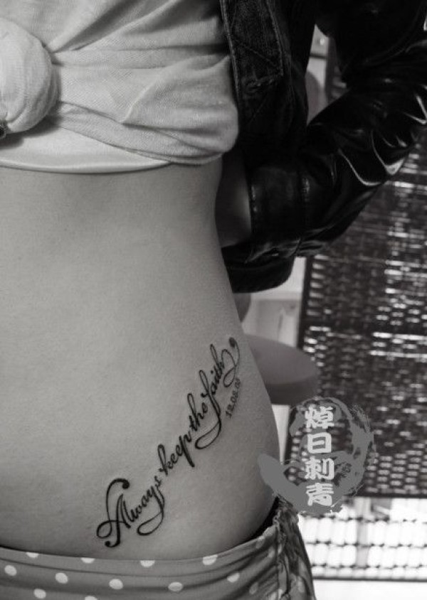 美女腹部精美流行的花体英文字母纹身图案_字母纹身图案大全_纹身图吧