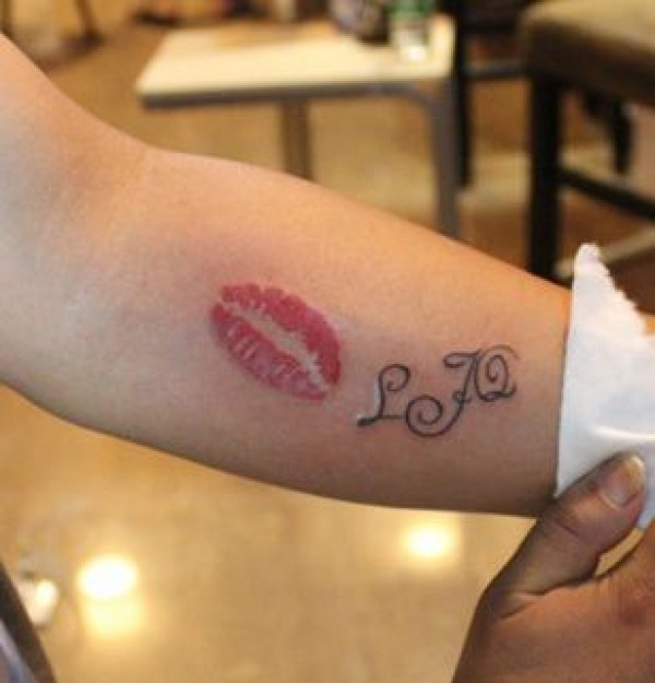 女生手臂流行的唇印字母纹身图案_字母纹身图案大全_纹身图吧