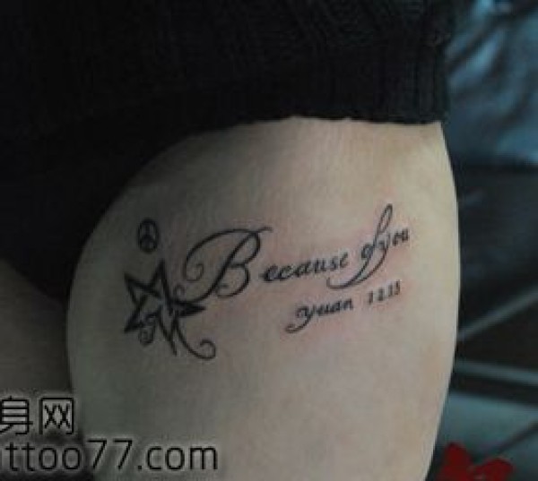 女孩子腿部五角星字母纹身图案_字母纹身图案大全_纹身图吧