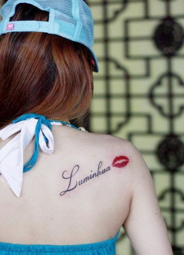 女孩子肩背字母唇印纹身图案_字母纹身图案大全_纹身图吧