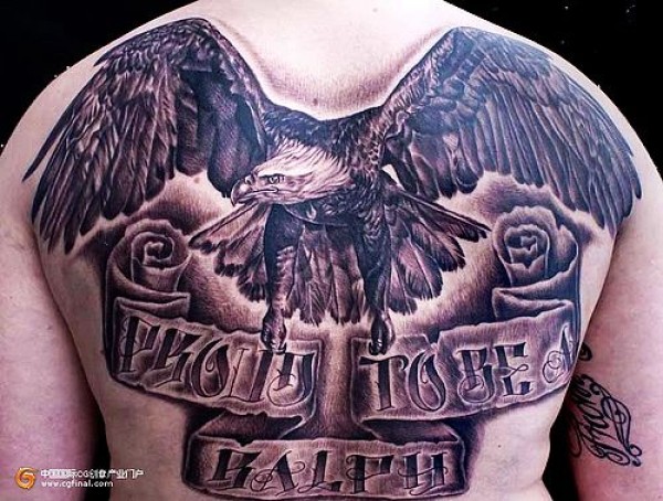 湖北随州文身店满背老鹰字母纹身图案图片大_字母纹身图案大全_纹身图吧