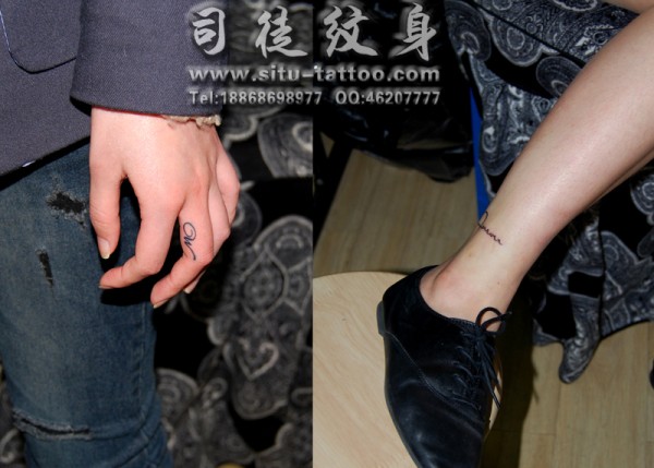 腿部唇印与字母纹身_字母纹身图案大全_纹身图吧