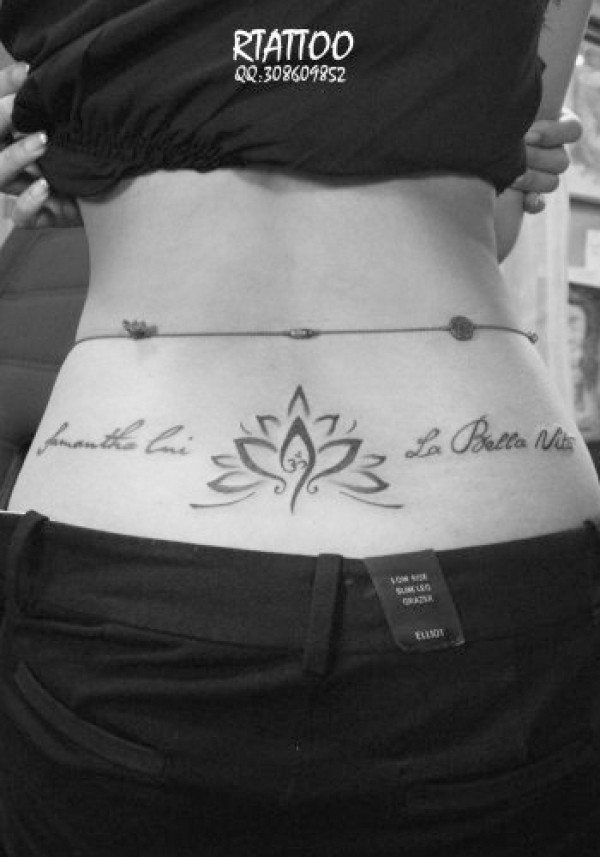 美女腰部莲花与字母纹身_字母纹身图案大全_纹身图吧