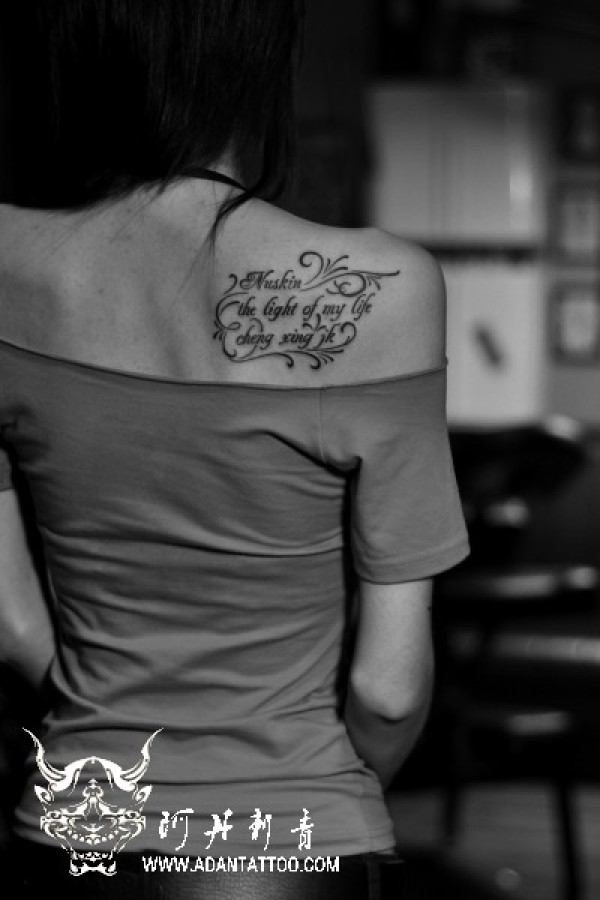 背部指南针与字母纹身_字母纹身图案大全_纹身图吧