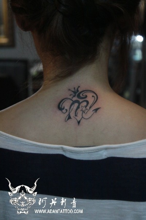背部指南针与字母纹身_字母纹身图案大全_纹身图吧