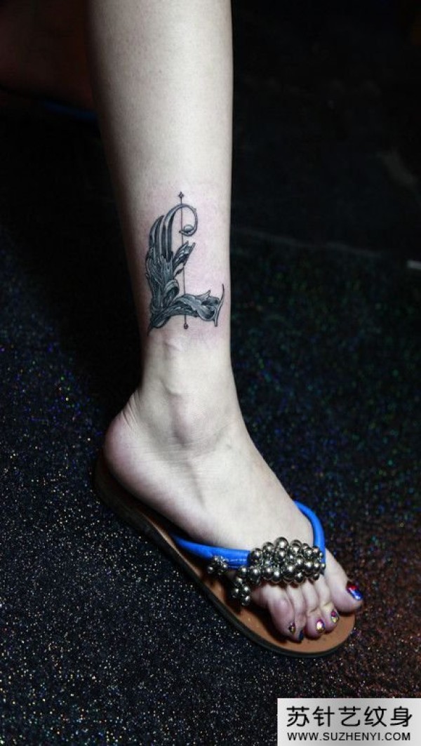羽毛字母L小腿纹身_字母纹身图案大全_纹身图吧