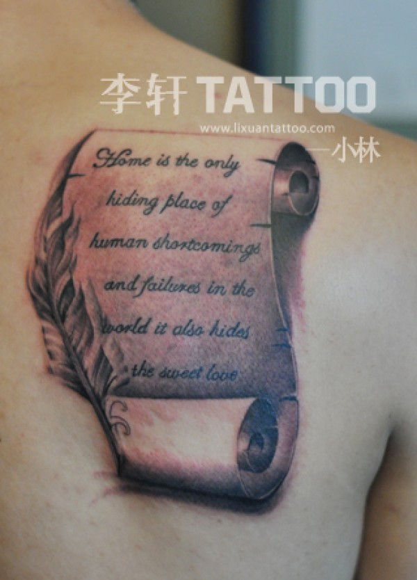 背部指南针与字母纹身_字母纹身图案大全_纹身图吧