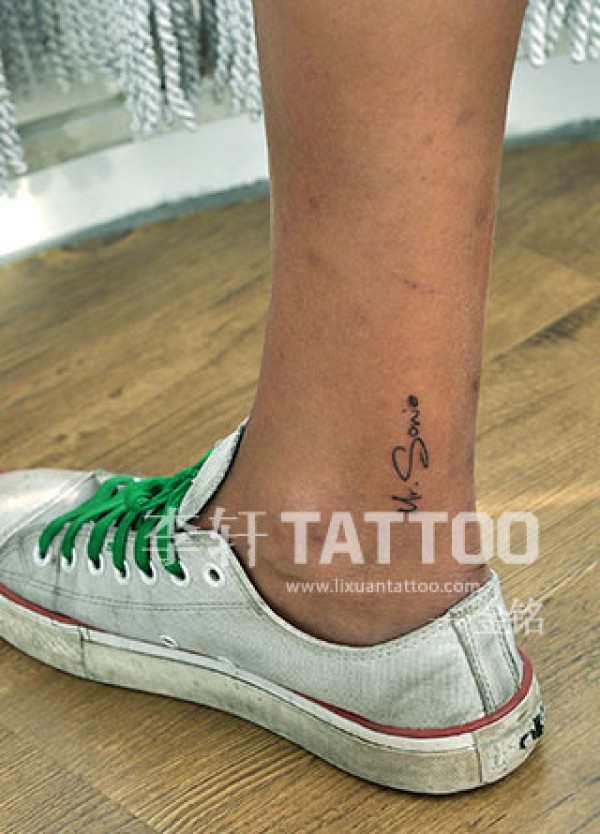 腿部唇印与字母纹身_字母纹身图案大全_纹身图吧