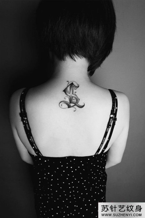 后颈黑白字母纹身图_字母纹身图案大全_纹身图吧