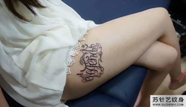 小清新花体性感美腿英文字母纹身_字母纹身图案大全_纹身图吧