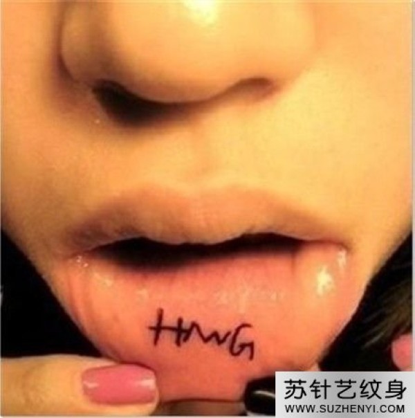 最新个性女生嘴唇英文字母刺青_字母纹身图案大全_纹身图吧