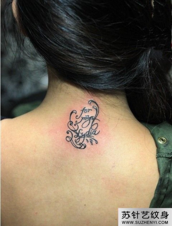 后背创意简易花藤字母刺青图片_字母纹身图案大全_纹身图吧