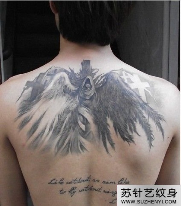 背部指南针与字母纹身_字母纹身图案大全_纹身图吧