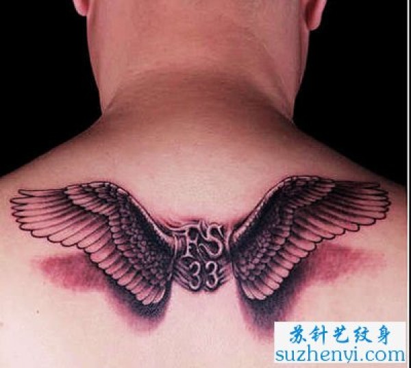 后背翅膀字母纹身图案图_字母纹身图案大全_纹身图吧