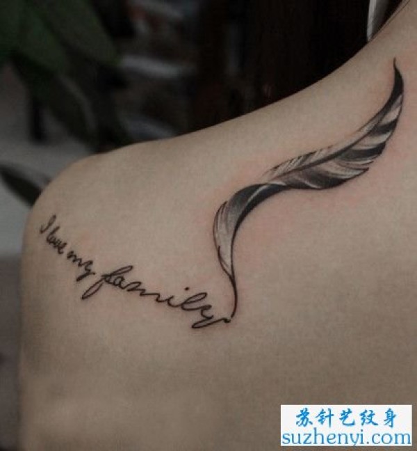 肩膀处羽毛与字母纹身图案_字母纹身图案大全_纹身图吧