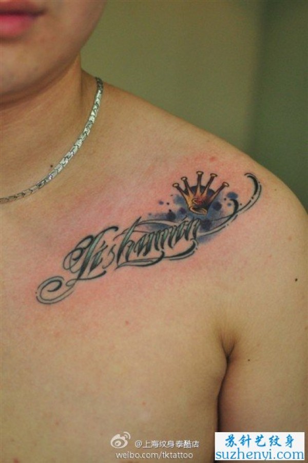 男人锁骨处字母与皇冠纹身图案_字母纹身图案大全_纹身图吧