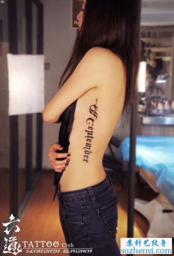 美女侧腰哥特字母纹身图案_字母纹身图案大全_纹身图吧