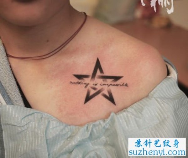 胸部五芒星与字母纹身图案_字母纹身图案大全_纹身图吧