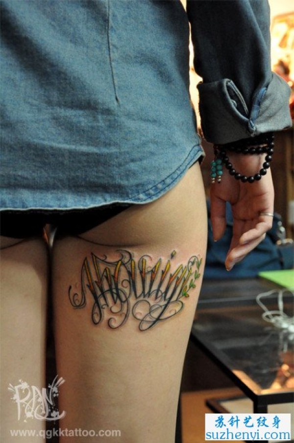 腿部唇印与字母纹身_字母纹身图案大全_纹身图吧