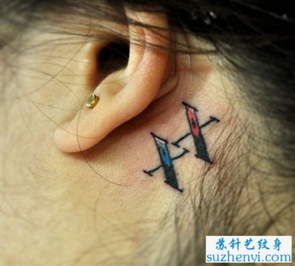 耳部精美的字母纹身图案_字母纹身图案大全_纹身图吧