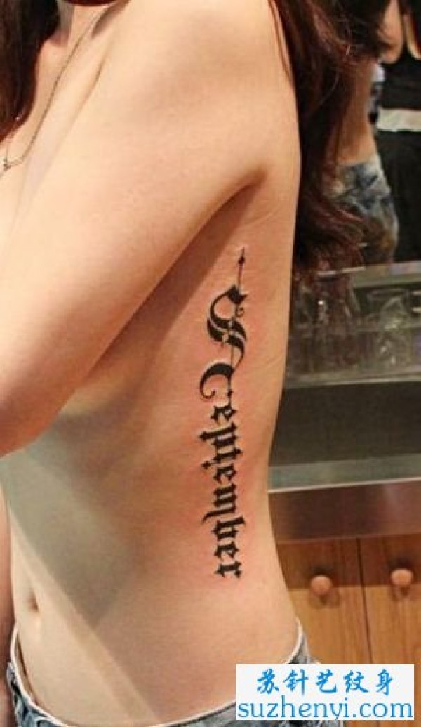 侧腰精美的哥特字母纹身图案_字母纹身图案大全_纹身图吧