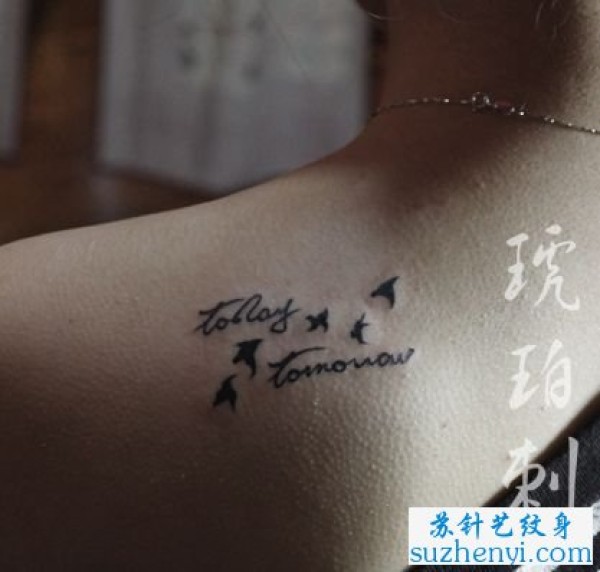 肩部好看的小鸟字母纹身图案_字母纹身图案大全_纹身图吧