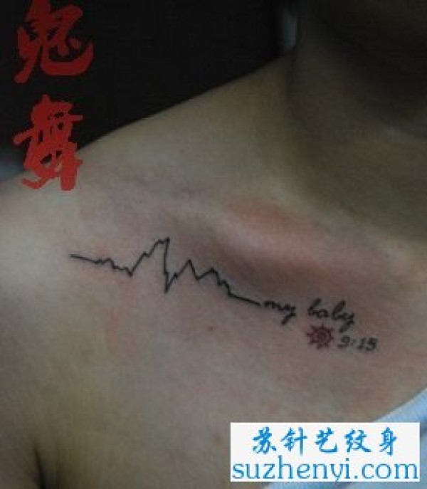 锁骨处心电图字母纹身图案_字母纹身图案大全_纹身图吧