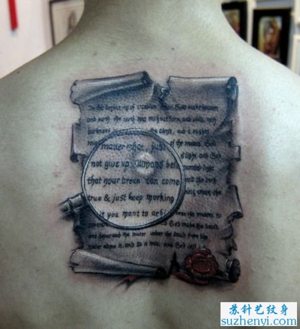 背部书卷字母纹身图案_字母纹身图案大全_纹身图吧