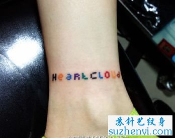 一枚腿部彩色字母纹身图案_字母纹身图案大全_纹身图吧