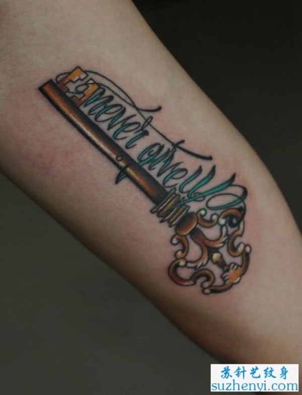 漂亮的彩色钥匙与字母纹身_字母纹身图案大全_纹身图吧