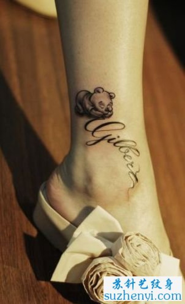 腿部小熊维尼英文字母纹身_字母纹身图案大全_纹身图吧
