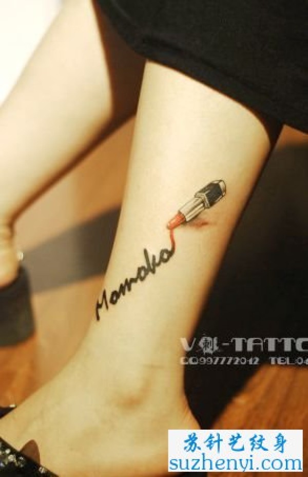 腿部英文字母与口红纹身_字母纹身图案大全_纹身图吧