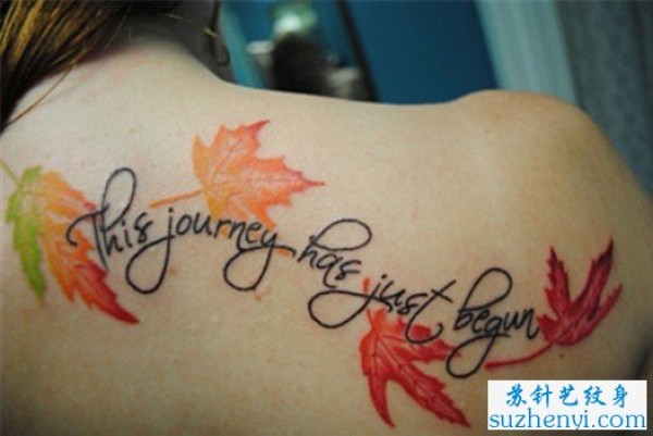 背部英文字母与枫叶纹身_字母纹身图案大全_纹身图吧