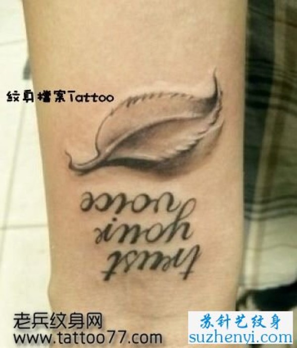 腿部字母与羽毛纹身_字母纹身图案大全_纹身图吧