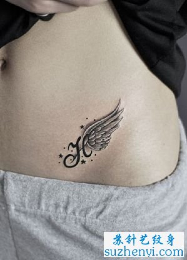腹部字母翅膀纹身_字母纹身图案大全_纹身图吧