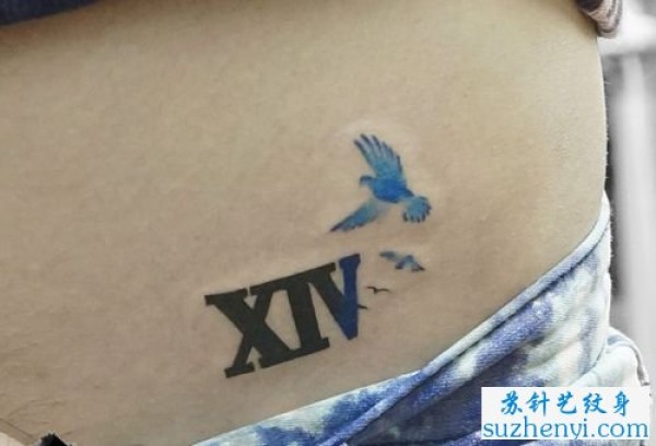 腹部英文字母与小鸟纹身_字母纹身图案大全_纹身图吧