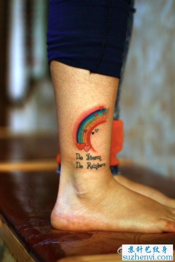 腿部彩虹与字母纹身_字母纹身图案大全_纹身图吧