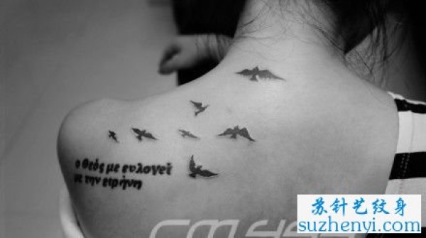 肩背流行的字母与小鸟纹身_字母纹身图案大全_纹身图吧