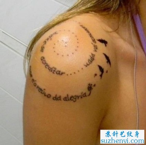 肩膀字母与小鸟纹身_字母纹身图案大全_纹身图吧