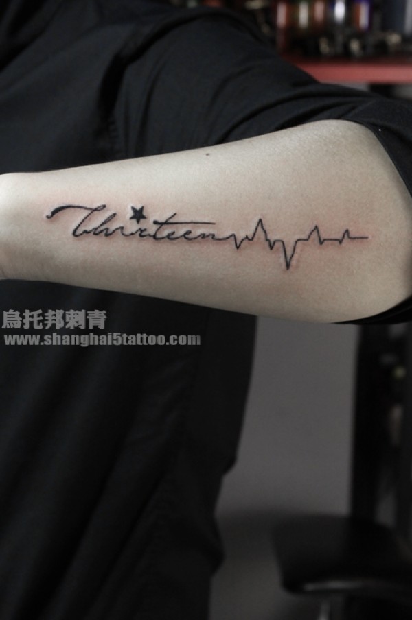 腿部英文字母心电图纹身_字母纹身图案大全_纹身图吧