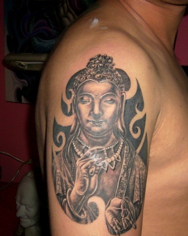 盘腿参禅释迦牟尼佛纹身_宗教纹身图案大全_纹身图吧