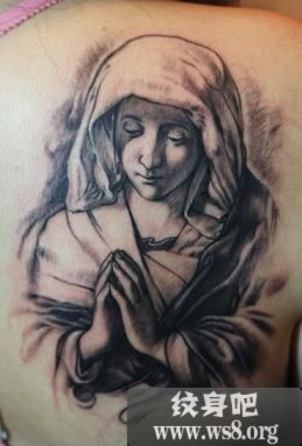 肩部慈祥圣母国画纹身图案_宗教纹身图案大全_纹身图吧
