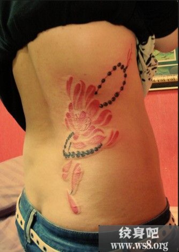 腰侧莲花佛珠纹身图案_宗教纹身图案大全_纹身图吧